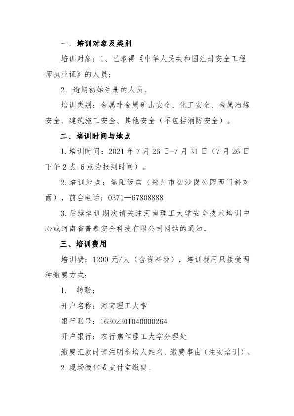 关于举办第八期注册安全工程师继续教育培训班的通知